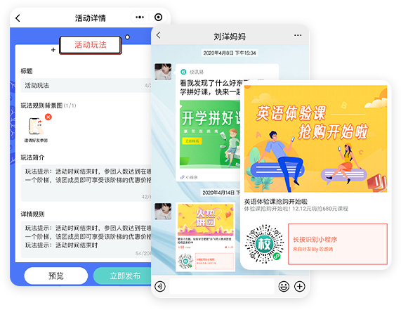 助力砍价,更多助力更多优惠,刺激家长主动分享,快速爆光品牌