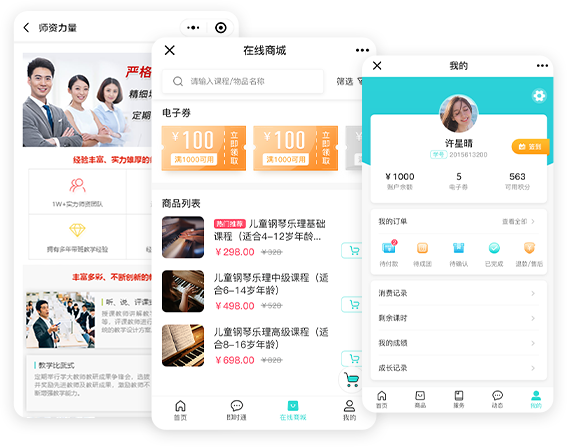 课程电商、积分商城,打通线上线下销售闭环,拓宽机构业务渠道,提升销售业绩